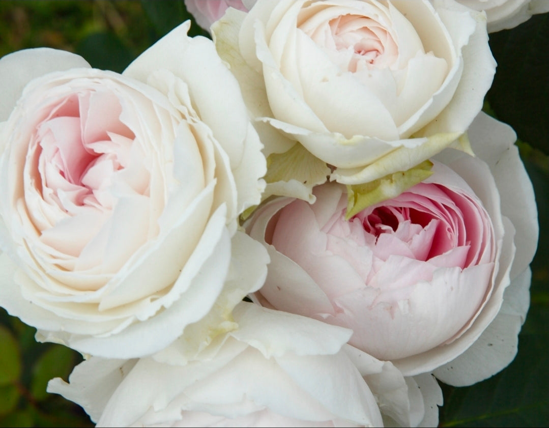 Incredibly beautiful, peony-shaped blooms with a cream exterior and a warm pink center. This is a healthy, well formed rose with exceptional vigor.