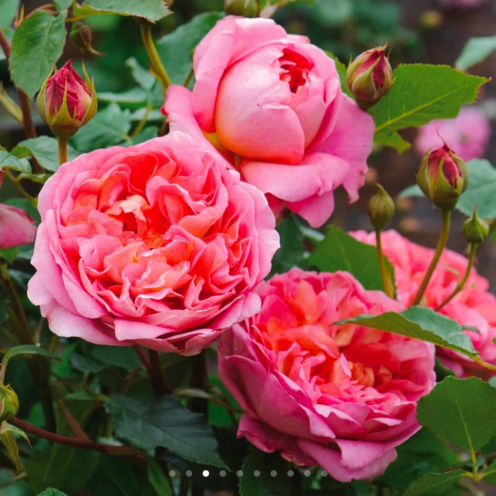 Red buds open to beautifully formed, upward facing, coral-pink rosettes. Small petals of varying shades mingle to provide a most pleasing effect. The myrrh fragrance has delicious hints of hawthorn, elderflower, pear and almond. It forms an upright shrub. Charles II hid in an oak tree at Boscobel House during the English Civil War.