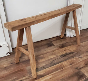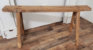 The Antique Skinny Elm Bench from Vintage-Character is a timeless piece of furniture. Before chairs became more common in the 16th century, the bench was the primary form of seating. This Simple Village Bench is best used for sitting two to three people and adds farmhouse appeal to any room.