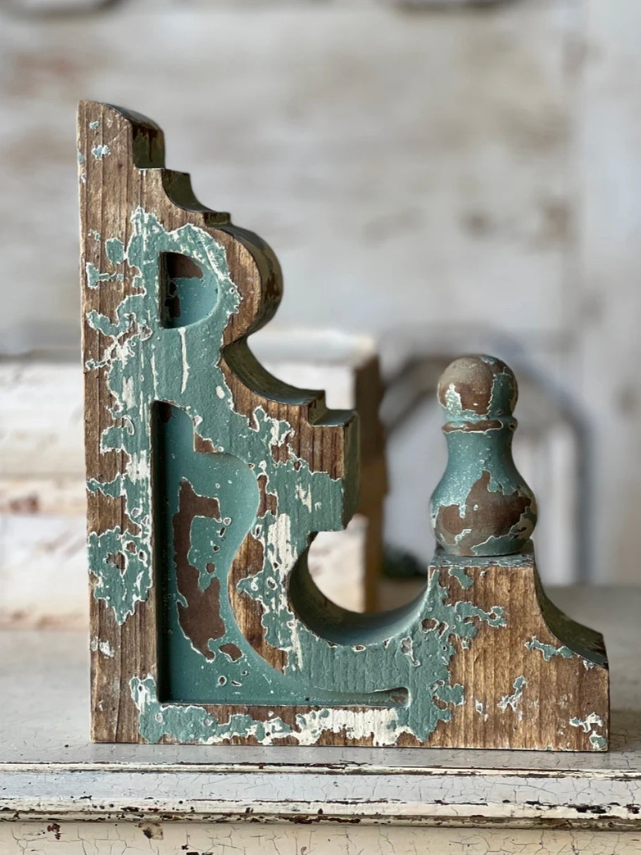 These olde world corbel ends are a great way to add some flare to your space. Use them as bookends, hang them or display them anywhere. Great chippy finish in a blue/green color. Make a statement in your home with the Olde World Corbel Ends from Vintage Character.