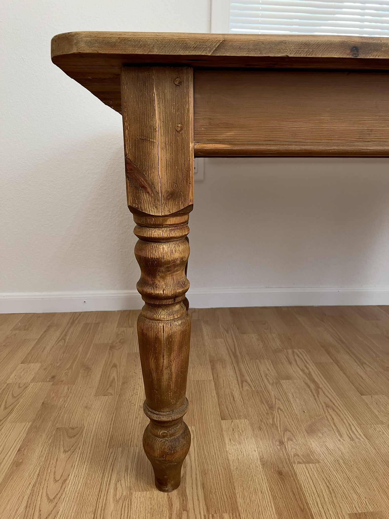 Finding authentic English Pine pieces is rare, making this table a valuable addition to your kitchen. With dimensions of 60 inches by 35 1/4 inches and a height of 30 inches, it comfortably accommodates seating with a trim height of 24.5 inches.