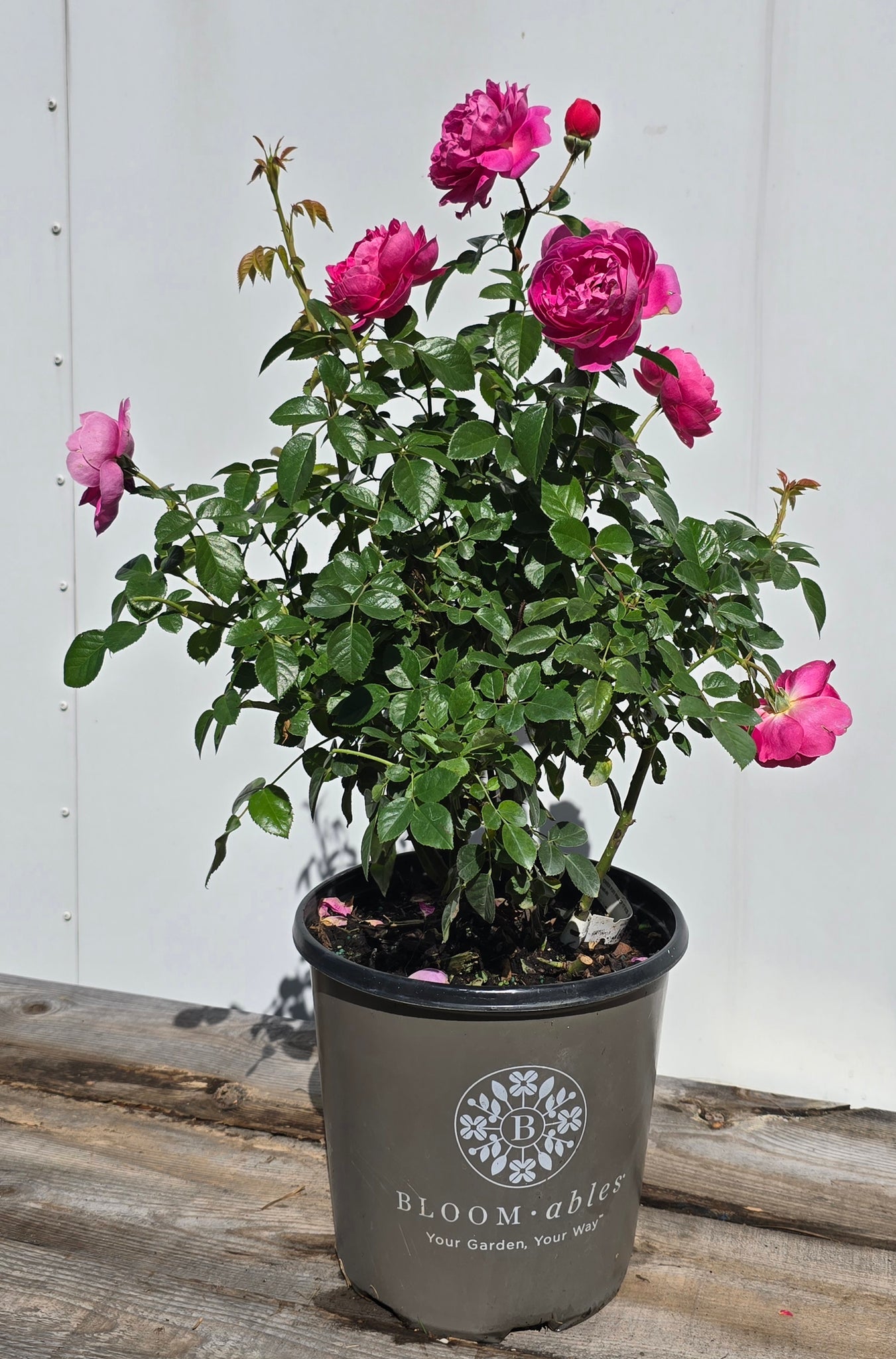 Electric pink, non-fading blossoms cover this compact Floribunda in clusters of 6–8 blooms per stem. The blooms have an old-fashioned form reminiscent of a peony, and a moderate lemongrass fragrance. This variety is vigorous on its own roots.